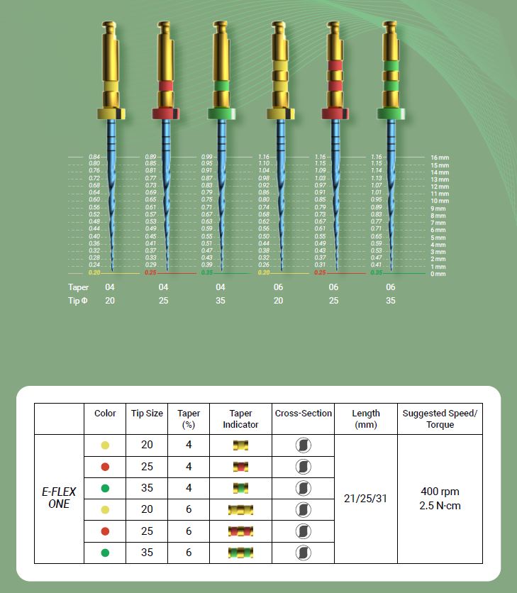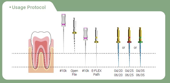 Az E-Flex One tűk használata előtt javasoljuk a #10-es és a #15 kézi tágítót használni, ami után rögtön következhet az E-flex One.