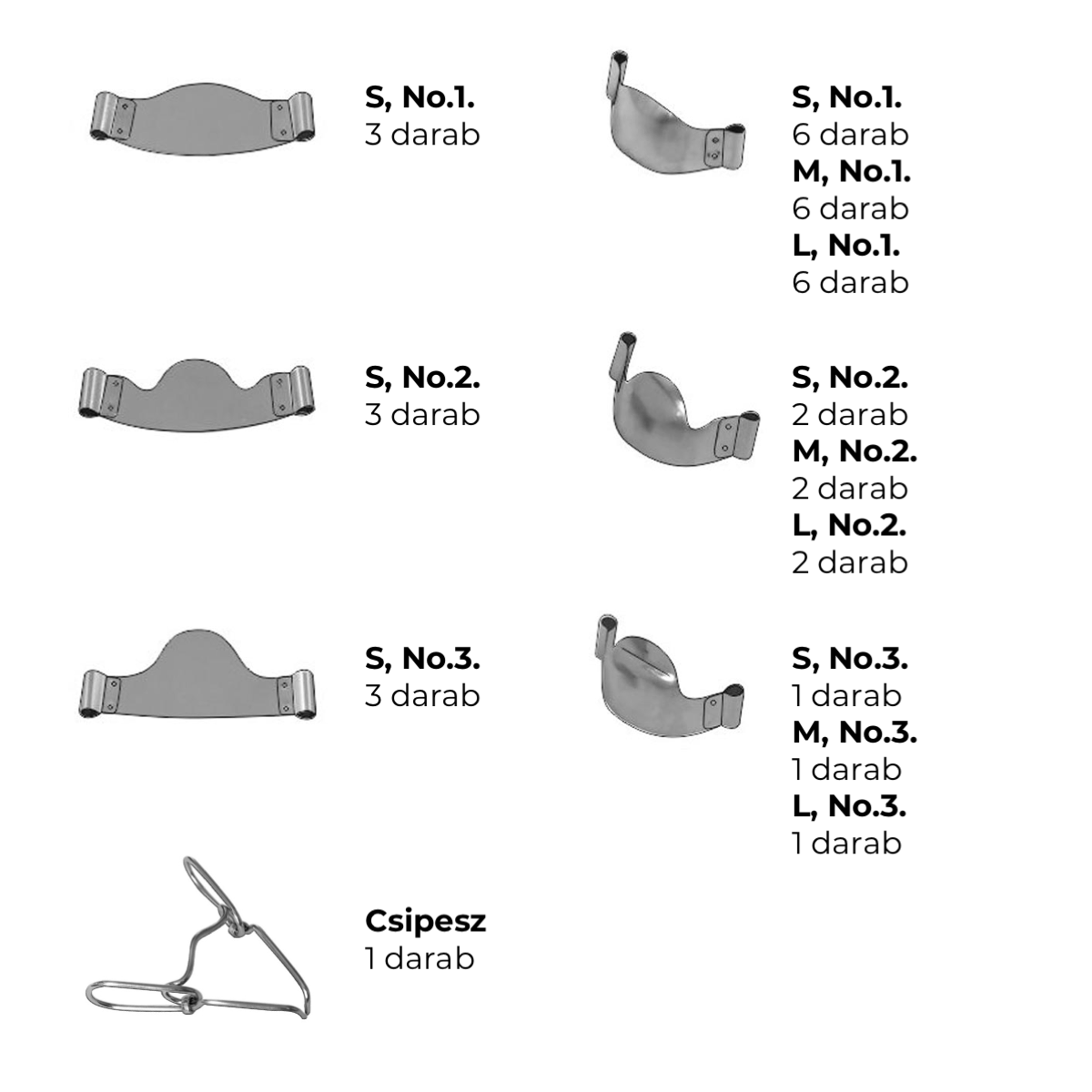 Szorítóhüvelyes Domborított Fémmatrica Gingiv. Kiterj. - Univerzális Készlet No.1,2,3. • 35um - S,M,L (36db + 1 csipesz)